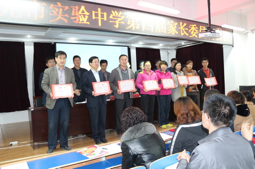 副校长郝子慧公布了第四届家长委员会名单,并颁发了聘书。副校长刘勇宣读了《家长委员会章程》。初中学部主任王斌介绍了学校德育工作情况。
