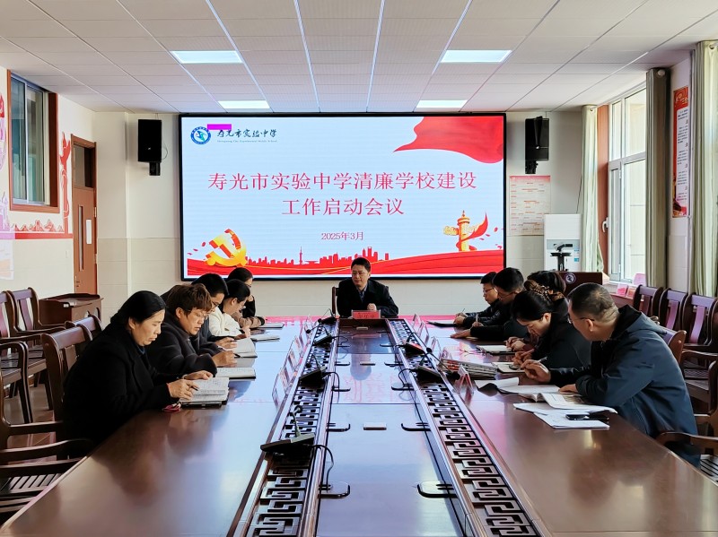 2025年3月6日,寿光市实验中学召开清廉学校建设启动工作专项会议,会议学习了寿光市委教育工委《关于进一步加强清廉学校建设的通知》,按照寿光市委深入推进清廉寿光建设要求和寿光市教育工作动员大会上的讲话精神,推动“清廉学校”创建,营造风清气正的教育政治生态和育人环境。