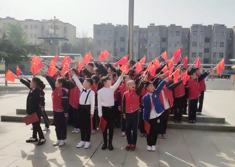 嘹亮的国歌声中,鲜艳的五星红旗迎着朝阳冉冉升起。副校长方秀梅宣读《习近平总书记致中国少年先锋队建队70周年的贺信》;少先队员代表在国旗下讲话;全体少先队员在大队辅导员带领下,重温入队呼号;四年级的孩子们将最美的歌声唱响了爱国的主旋律,表达出全体师生礼赞祖国、奋进新时代的浓浓深情。 (作者:魏静 审核:张启江)