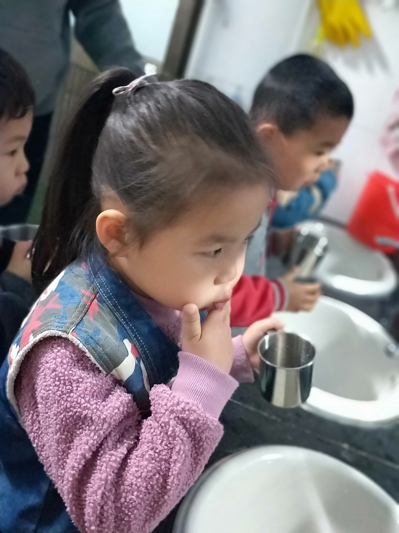 吃完早饭后,在老师带领下,每位幼儿拿好自己的水杯排好队,一个个进行漱口活动。在漱口过程中,老师耐心讲解漱口时应注意的事项,向幼儿介绍饭后漱口的好处。通过实践练习,大部分幼儿可以掌握饭后漱口的正确方式和技巧。