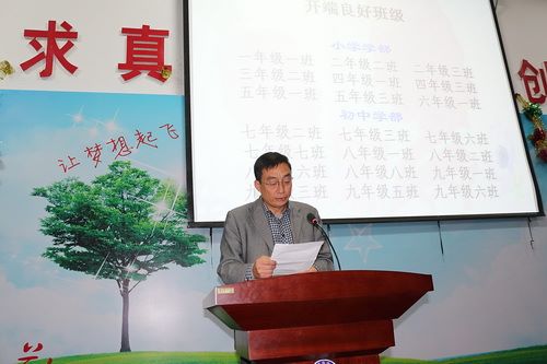 会上,高文春校长对各位班主任前段时间的工作给予了充分肯定,并勉励大家要相互学习,团结协作,形成共识,共同打造教育的一片蓝天。副校长郝子慧宣读了对开端良好班级、优秀班主任的表彰决定,部分班主任作典型发言。副校长巴明玉作总结发言。