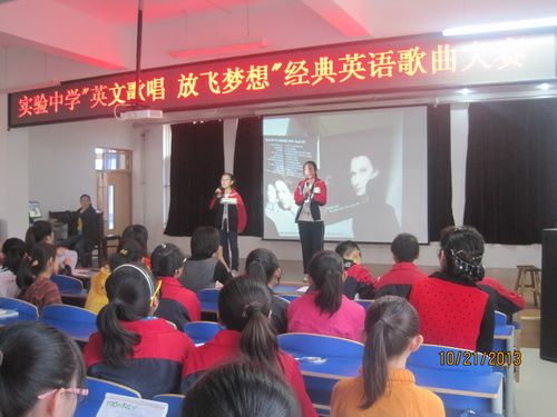 为激发学生学习英语的浓厚兴趣,增进学生间的交流,10月21日下午,实验中学举办主题为“英文歌唱、放飞梦想”的校园英文歌曲大赛。