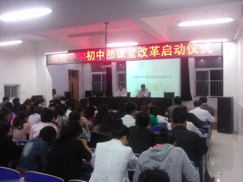 10月8日晚,实验中学举行课堂教学改革启动仪式。高文春校长就课堂教学改革讲了指导意见。