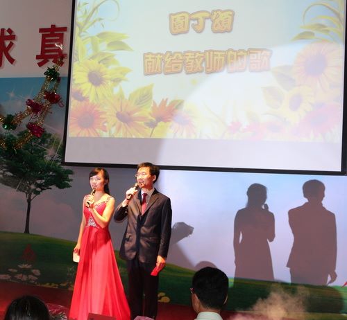 9月9日晚,实验中学庆祝第29个教师节“园丁颂”文艺晚会在学校礼堂举行。全校教师齐聚一堂,载歌载舞,用自编、自导、自演的节目庆祝教师节,度过了一个轻松、愉快的夜晚。