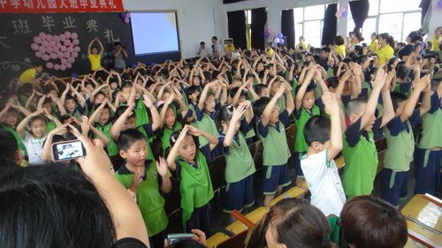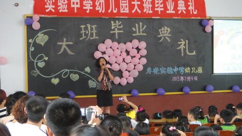 7月4日上午,市实验中学幼儿园大班孩子和家长欢聚一堂,在学校阶梯教室举行了大班毕业典礼。