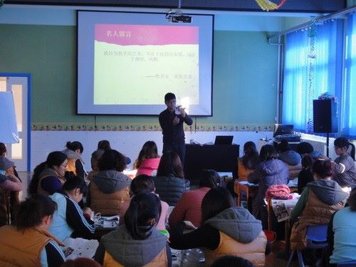 1月13日,实验中学幼儿园特邀米罗可儿上海培训总部的申腾蛟老师来园对全园的授课教师进行了培训。教师们通过聆听讲座、参与实践操作、互动研讨、作品点评等形式进一步了解了不同年龄段幼儿的美术教育的兴趣以及各年龄段的教育目标,并认识了“米罗可儿”教材的基本特点及操作要点,为更好地使用该教材打好基础。