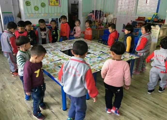 赠书活动花样丰富,形式新颖。老师们有的将书籍摆放成“回”字形,让孩子们围绕书籍“转圈”选取,有的将书籍归类整理,让书宝宝排行队,等待它的小主人。每个孩子都可以选择4-5本不同的图书。
