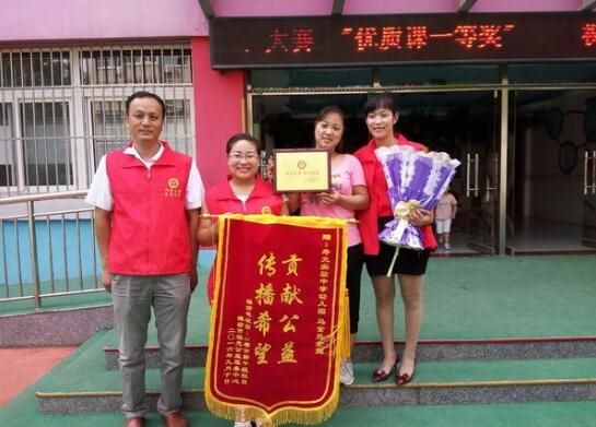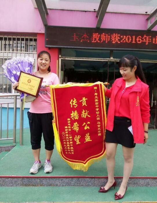 近日,市实验中学幼儿园马金兰老师,收到了一份特殊的教师节礼物,一份由潍坊电视台都市新干线栏目、潍坊市烛光公益服务中心联合给马金兰老师颁发的“贡献公益,传播希望”锦旗。