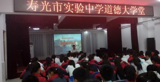 9月27日,市实验中学举办“道德大学堂”活动,市关心下一代委员会陈绍棠主讲,实验中学全体师生和部分家长参加。