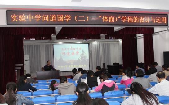 近日,实验中学举办国学专题培训活动。培训由隋慧成主讲,高文春校长主持,初中部全体教师参加专题培训学习。