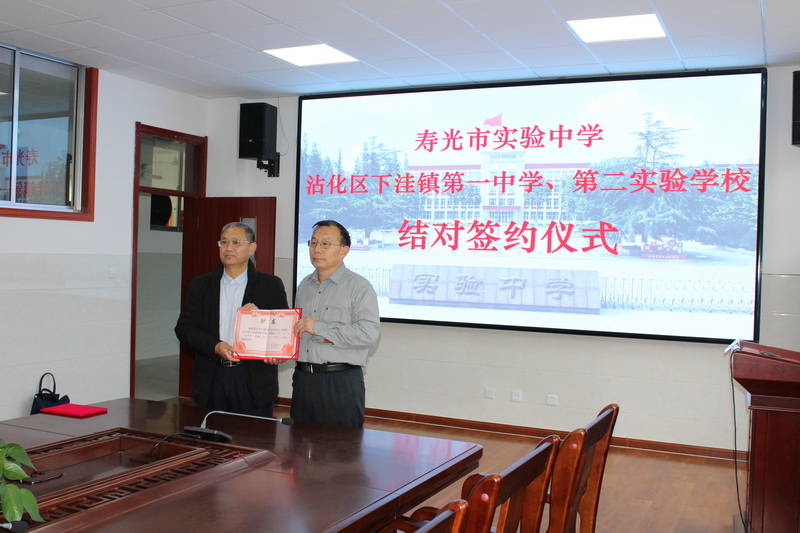 实验中学初中部负责人王斌就学校推行“体面+”教育范式以来取得的发展进步及师生的体面成长进行了汇报发言;初中部学部主任刘秀芳向来访领导、教师介绍了“体面+”教育范式对全体师生潜移默化的影响和成果积淀;沾化区下洼镇第一中学和第二实验学校与寿光市实验中学签订结对协议,并合影留念。