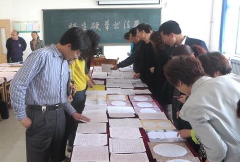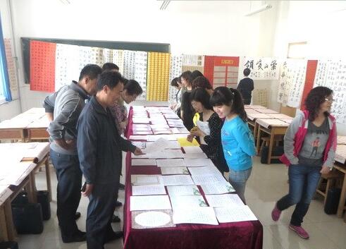 4月18日上午,实验中学举行全校师生硬笔书法展,集中展评评选出的优秀作品。学生代表、教工代表、学校领导等200多人观展。